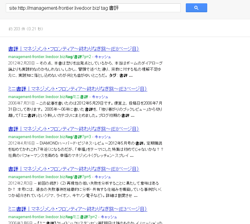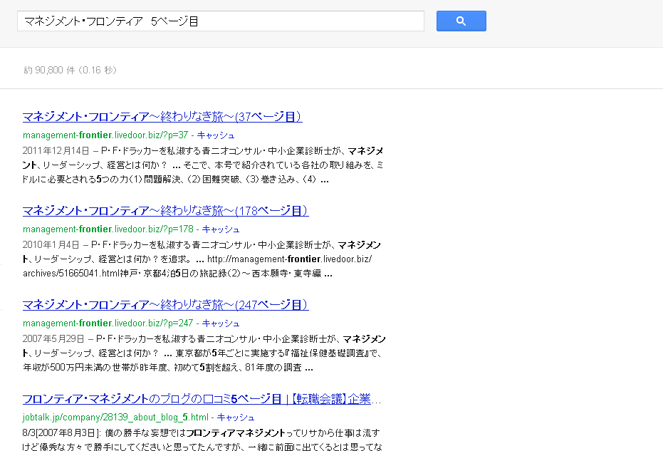 数日後には、googleの検索結果にも「(○ページ目)」と表示されるようになった。「5ページ目」で検索しているのに、肝心の5ページ目が出てこないのが問題だが・・・。